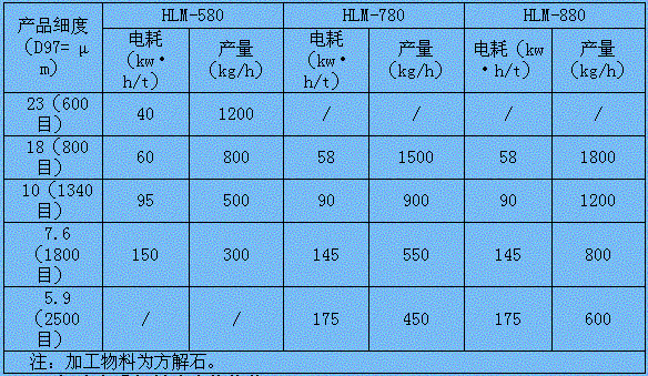 表2:HLM環輥磨加工的產品細度與電耗、產量的關系
