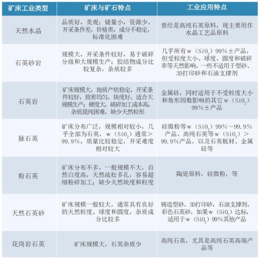 石英礦床工業(yè)類型與應(yīng)用特點的關(guān)系