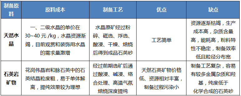 高純石英一般都是以一、二級天然水晶為原料,但由于儲量很小,開采技術(shù)條件差,以及開采資源逐步枯竭等原因,后期通過改進技術(shù),以脈石英和花崗巖石英替代天然水晶為原料,制備高純石英成為一種趨勢。