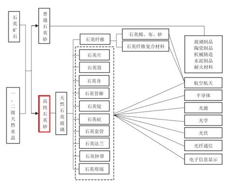 高純石英砂具有高的耐溫性,極好的化學(xué)特性,優(yōu)良的電絕緣性和透光性等,是高新技術(shù)產(chǎn)業(yè)不可替代的礦物原料。通過加工成石英玻璃等相關(guān)制品廣泛應(yīng)用在新一代信息產(chǎn)業(yè)、節(jié)能環(huán)保產(chǎn)業(yè)、高端裝備產(chǎn)業(yè)、生物產(chǎn)業(yè)以及新材料產(chǎn)業(yè)等高新技術(shù)領(lǐng)域。