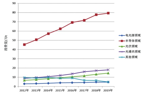 2012~2019 年全球高純石英分領(lǐng)域消費變化