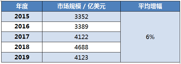 2015 ~2019 年全球半導(dǎo)體市場規(guī)模
