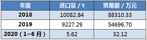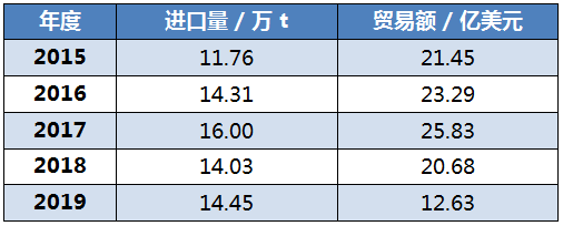 2019 年數(shù)據(jù)來自中國海關(guān)總署 (HS28046190)