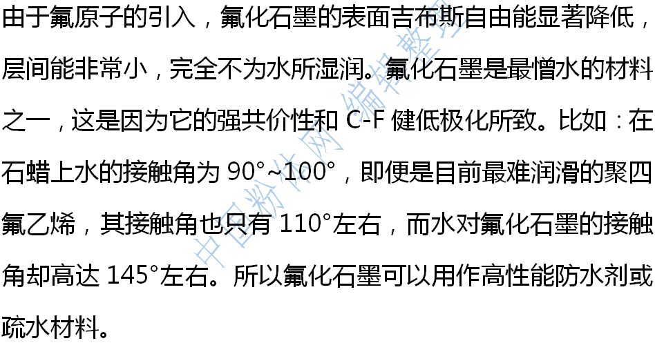 1947年,Rüdorff通過嚴格控制反應溫度,在410~500℃條件下合成了氟化石墨(CF0.67-0.985)n,該化合物顏色隨氟含量的增加,從灰色變為白色。