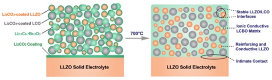 區別于傳統鋰離子電池正極,在全固態電池的正極組成中引入高電導率的石榴石型固體電解質粉、Li3BO3等形成復合正極,在提升電極電導率的同時能夠改善正極與石榴石型固體電解質片之間的界面相容性、降低界面阻抗。