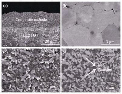 (a)復合陰極/LLZTO 電解質界面的 SEM 照片;