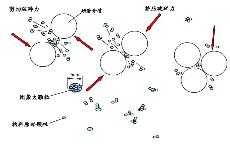(2)研磨(grinding),將大粒子研磨成小粒子,同時將凝集的顆粒粒子利用機械力碎裂成原始粒子。