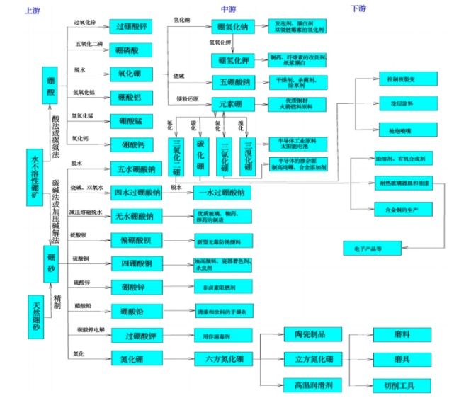 硼是一種重要的稀有非金屬元素,在地殼中的含量約為0.001%。硼元素不僅是高等生物所必需的微量營養素,其獨特物理特性使其具有質輕高硬、阻燃耐熱、耐磨催化、無磁性等一系列優良的物化特性。