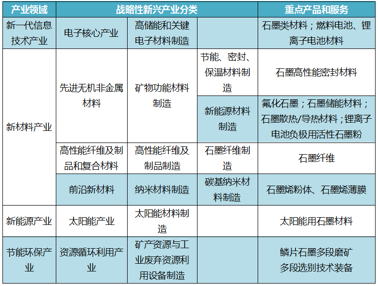 石墨及其制品在戰略性新興產業分類中的應用領域(2018)