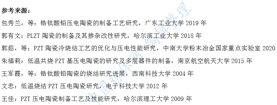 (來源:王佳:PZT壓電陶瓷制備工藝及性能研究)