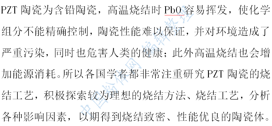 以上是解決鋯鈦酸鉛壓電陶瓷燒結過程中鉛揮發問題的經驗技巧。下面,我們將系統地來了解鋯鈦酸鉛壓電陶瓷的燒結。