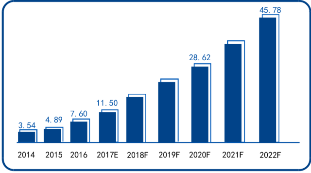 國(guó)內(nèi)碳納米管導(dǎo)電劑市場(chǎng),隨著動(dòng)力電池產(chǎn)業(yè)的快速增長(zhǎng),預(yù)計(jì)到2022年將達(dá)到45億元的國(guó)內(nèi)市場(chǎng)。隨著鋰電池高鎳正極、硅基負(fù)極和固態(tài)電池等新技術(shù)應(yīng)用規(guī)模擴(kuò)大,碳納米管的應(yīng)用會(huì)爆發(fā)式增長(zhǎng),單是在鋰電池領(lǐng)域就會(huì)成為每年百億級(jí)的市場(chǎng)。