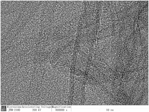 (第六代薄壁碳納米管典型透射電鏡照片)