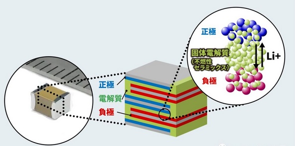 3、村田制作所宣布已開發出電池容量達業界先進水平*1的全固體電池,并榮獲49屆日本產業技術大獎中的內閣總理大臣獎。由于固態電池特有的高安全性和耐用性,預計將被廣泛引入到可穿戴設備和小型物聯網產品中。村田制作所的固態電池憑借其原創性和先進性,也將對工業發展和社會做出貢獻。據中國粉體網從村田中國獲悉,村田制作所的該全固態電池的制造,所使用的工藝源于村田制作所主力產品(比如多層陶瓷電容器和多層元件等)多年開發與積累的制造技術,同時組合了村田研發尖端的電子零部件過程中積累下來的多種材料技術。通過使用氧化物陶瓷電解質代替普通電池中使用的電解液,它具有“不會燃燒”和“耐熱”的特性。