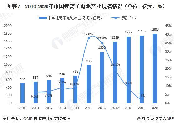 受鋰離子電池價格持續下滑影響,2019年我國鋰離子電池產業規模較上年小幅增長至1750億元,增速僅為1.3%,增速繼續呈現回落態勢。前瞻根據鋰電池產業發展趨勢初步估算,2020年我國鋰電池產業規模超過1800億元。