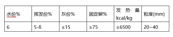 燃料使用無(wú)煙塊煤,指標(biāo)要求如下: