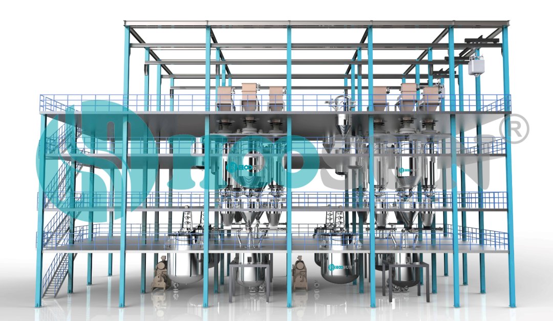 在智能化產線方面,琥崧創新性提出3F(fast,future,flexibility)柔性工廠模式,為鋰電材料企業提供三維設計建模,模擬生產流程服務,系統智能化控制,讓生產更智能、更高效、更環保。