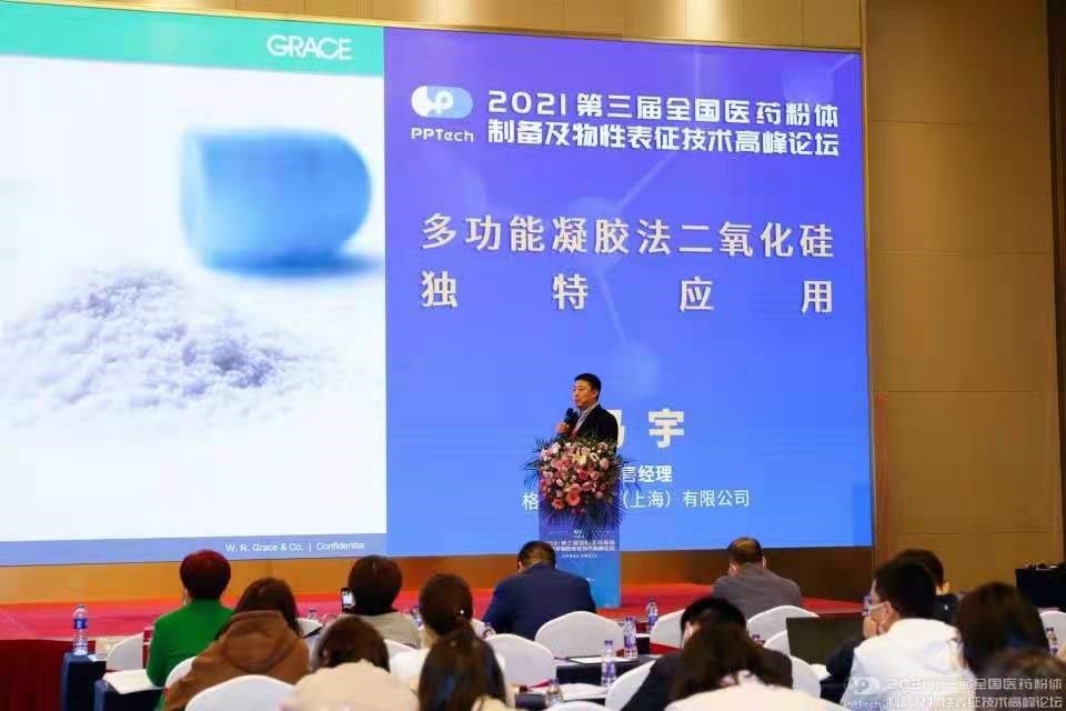 報告中,馮經(jīng)理著重講述Grace凝膠二氧化硅在藥用輔料領(lǐng)域不同于其他類型二氧化硅的獨(dú)特的功能性,并從防潮保護(hù)到固體吸附劑,以及作為藥物溶解性提升的解決方案。
