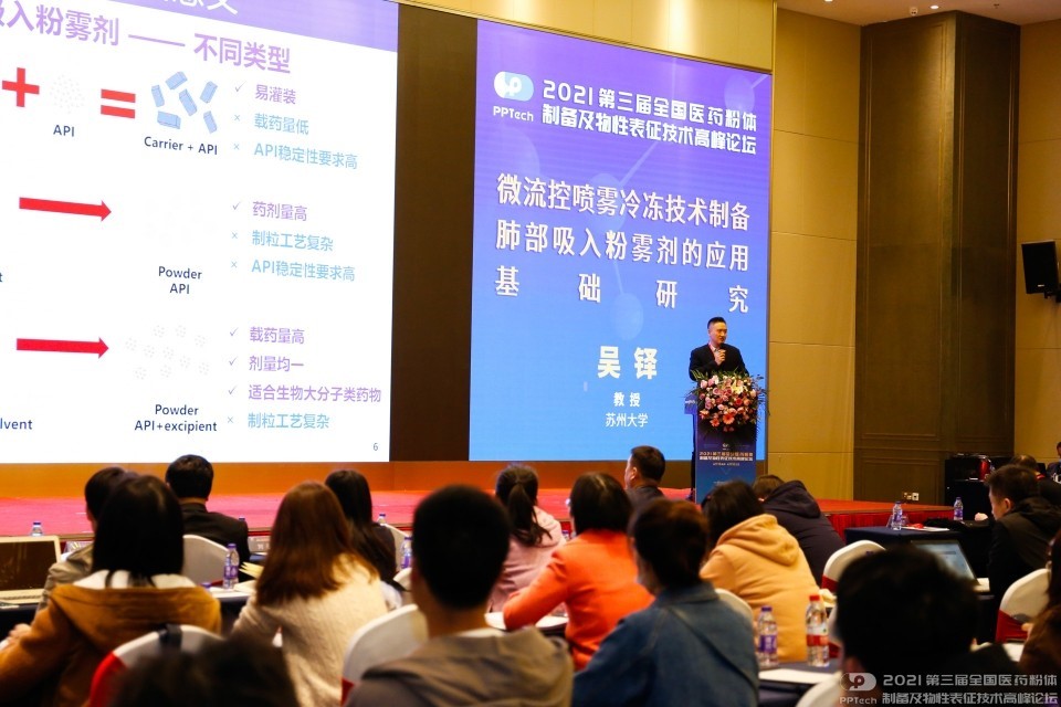 報告中,吳教授對干粉吸入制劑的市場、國內外吸入制劑開發現狀進行了分析,與大家分享我國創新吸入制劑的實際情況。同時,吳教授針對吸入制劑開發技術難點,結合實驗團隊在干粉吸入制劑開發領域的關鍵技術,對我國吸入制劑核心技術的未來發展提出了展望。