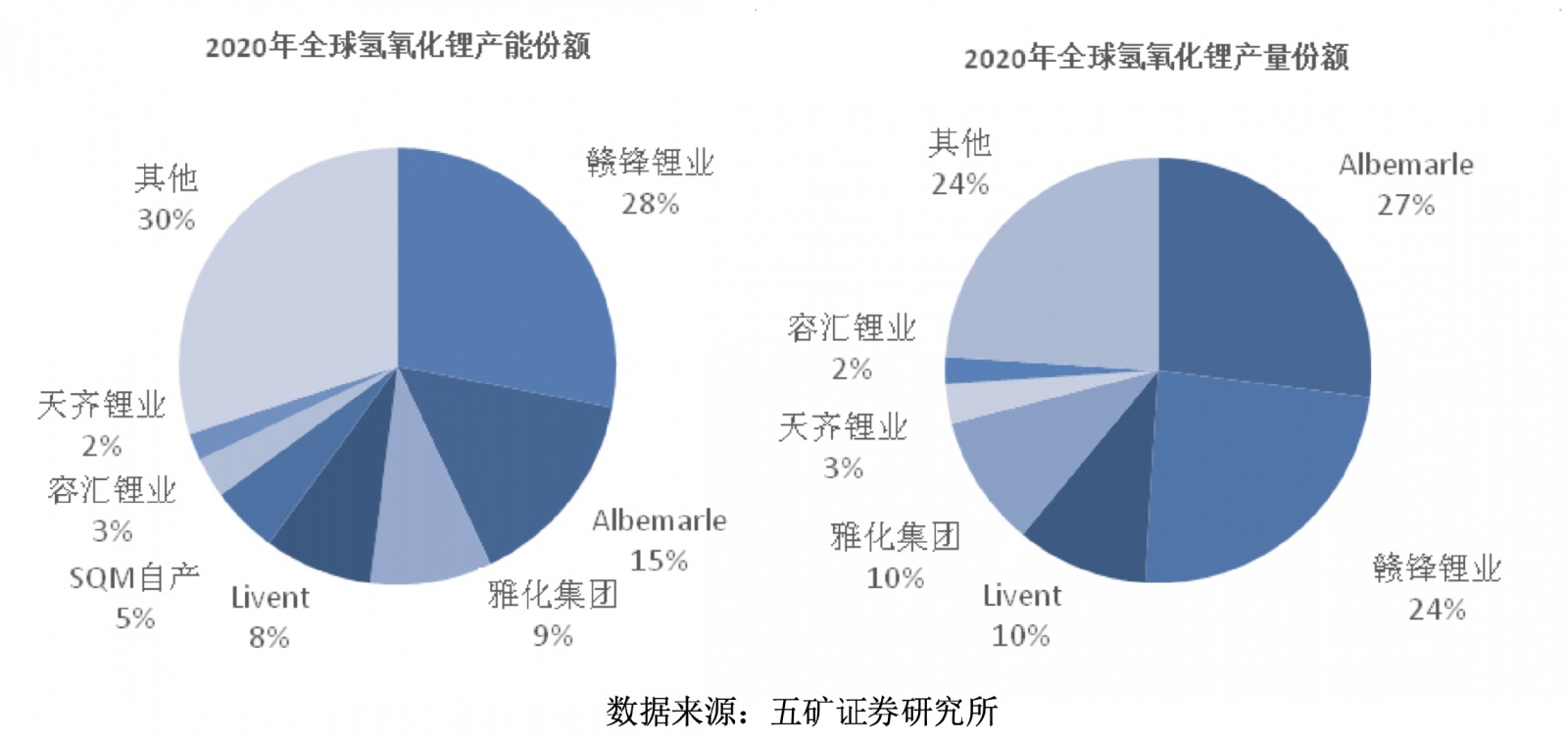記者則注意到,2020年,贛鋒鋰業、雅化集團及天齊鋰業在全球氫氧化鋰產量份額中合計占有37%的比重,亦是國內排名前三的廠商。