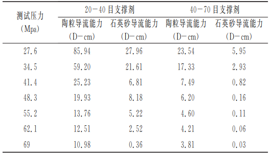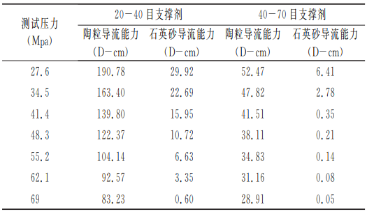 石英砂與陶粒在倒流能力的實(shí)驗(yàn)表明,在相同條件下,陶粒支撐劑導(dǎo)流能力遠(yuǎn)遠(yuǎn)大于石英砂支撐劑的導(dǎo)流能力,且鋼板條件下的導(dǎo)流能力均大于巖板條件下的導(dǎo)流能力。