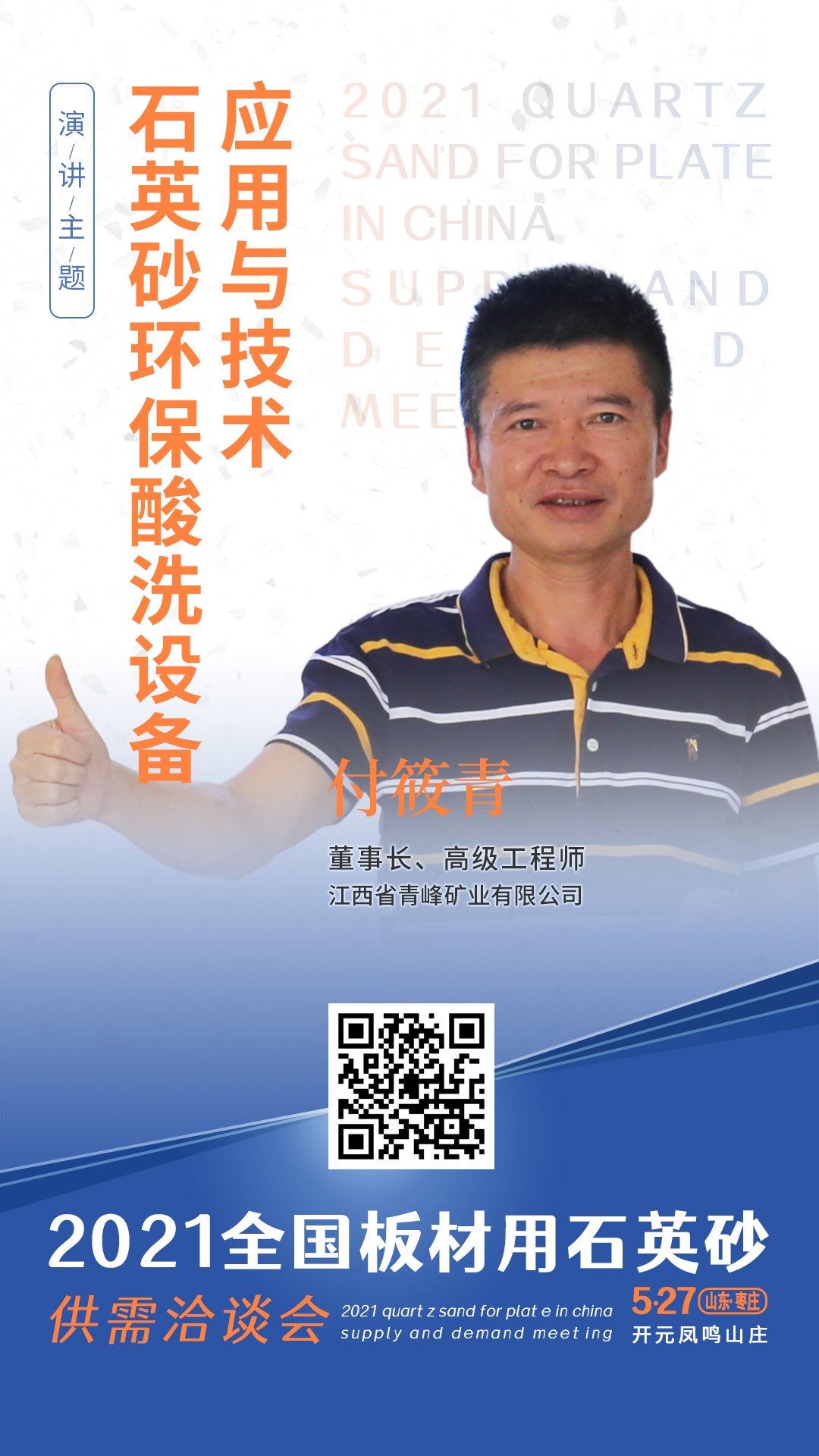 2021年5月27日,中國粉體網將在山東棗莊舉辦“2021全國板材用石英砂供需洽談會”,屆時,江西省青峰礦業有限公司、江西省沃美環?萍加邢挢熑喂径麻L、高級環保工程師付筱青將結合實際案例,詳解《石英砂環保酸洗設備應用與技術》。