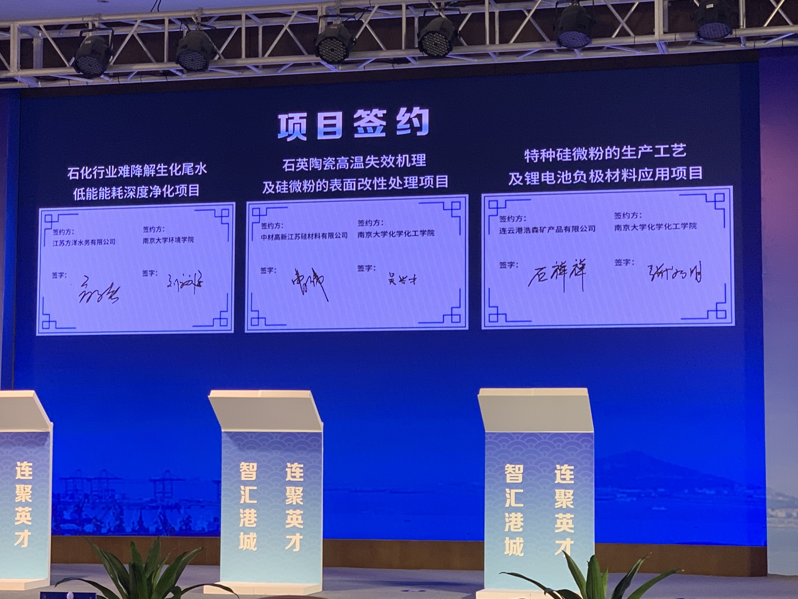 連云港資源豐富,是國內重要硅產業基地。連云港浩森礦產品有限公司與南京大學“特種硅微粉生產工藝與鋰電池負極材料應用”簽約項目成功。這是連云港高校科技人才引戰略20站第一站—南京!希望連云港和浩森礦產未來更好更快發展!