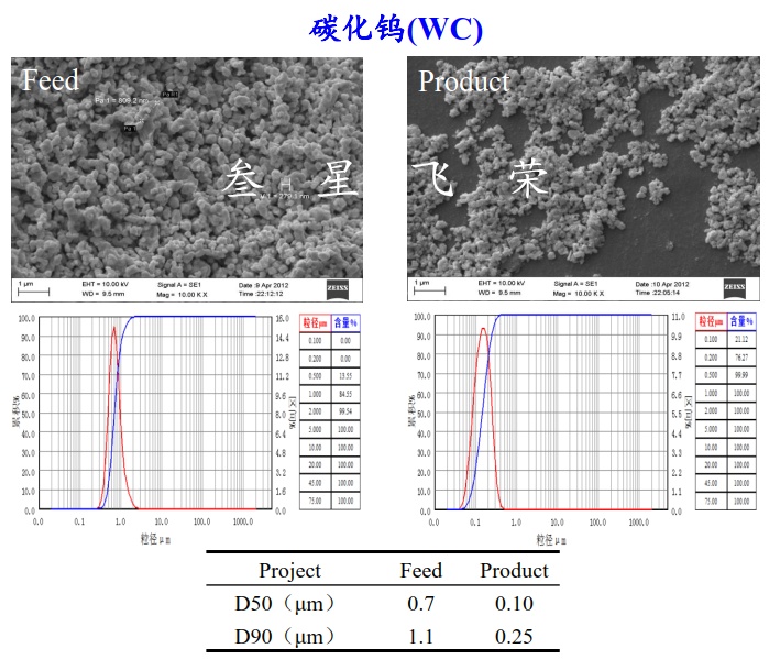 針對四大難點,叁星飛榮公司自主研發生產的具有獨立知識產權的立式無機封無篩網砂磨機可實現各種碳化物的超細粉體的產業化制備。以下為部分碳化物材料的應用案例。