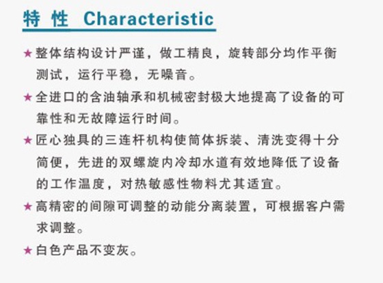 - 粒徑更細、顆粒均勻、分布更窄,離心研磨結構,比傳統臥式機研磨效率提高50%以上。