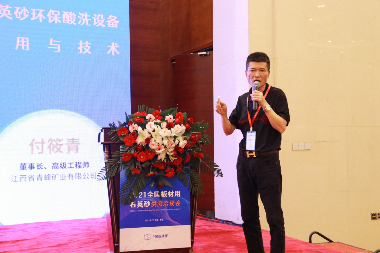 江西青峰礦業有限公司付筱青董事長作《石英砂環保酸洗設備應用與技術》報告