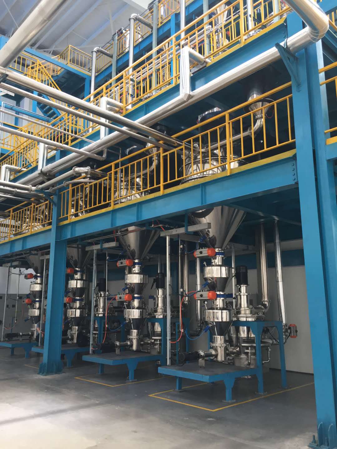 該系統將磷酸鐵鋰的粉碎烘干合二為一,對物料進行瞬間烘干,取消了單獨的烘干系統,大大降低了生產成本。整條生產線采用負壓輸送系統無人工接駁點,生產環境清潔無揚塵。