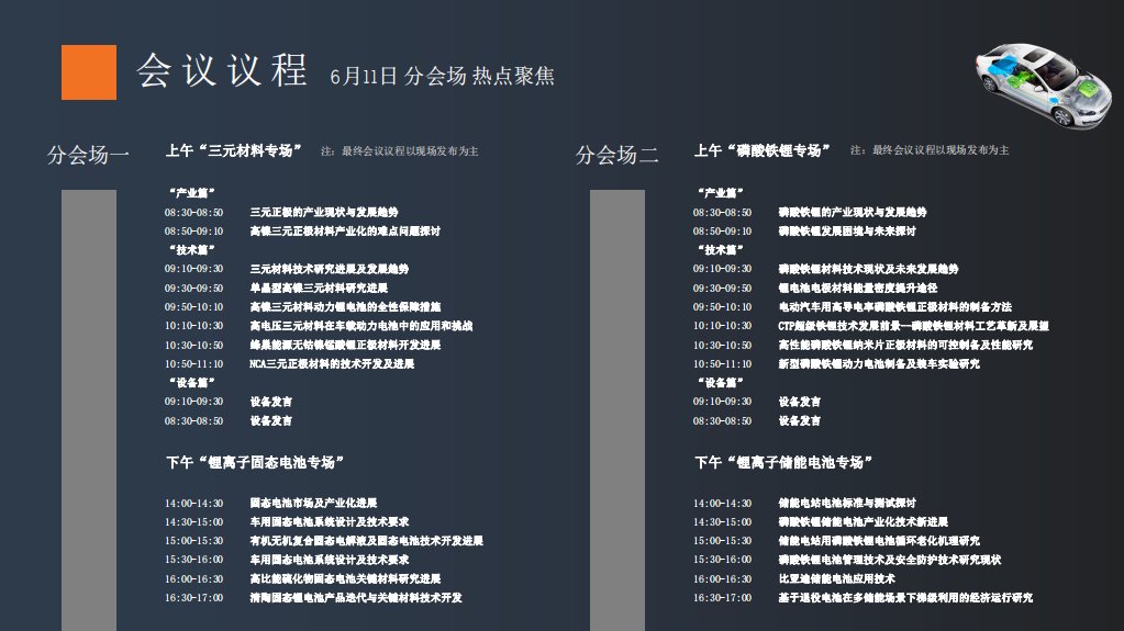 本次會議在定位上更加側重于產業鏈中下游的“前驅體-正極材料-鋰電池”生產環節,從正極材料技術及電池技術入手,以產業發展趨勢為導向,參會群體將會大幅偏重于正極材料及鋰電池生產企業從業者。