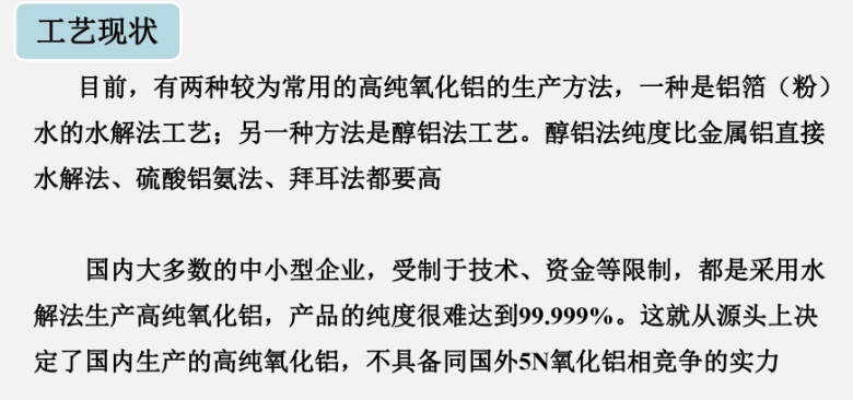 洪教授還詳細(xì)地分析了高純氧化鋁生產(chǎn)方法,并對不同方法的優(yōu)缺點(diǎn)進(jìn)行對比,對不同方法在工業(yè)上生產(chǎn)應(yīng)用做了詳細(xì)的對比。