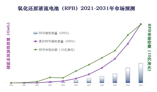 目前,越來越多的國家推行綠色經(jīng)濟政策,能源情景正在發(fā)生變化,儲能在電網(wǎng)容納可變可再生能源(VRE,Variable Renewable Energy)過程中的作用非常關(guān)鍵。電力供應(yīng)需要穩(wěn)定,不能因為風和太陽的間歇性而停止,因此研究人員認為,本十年末期RFB將大規(guī)模出現(xiàn),一旦RFB行業(yè)市場地位穩(wěn)固,將對已經(jīng)完善的鋰離子電池市場帶來極大沖擊。