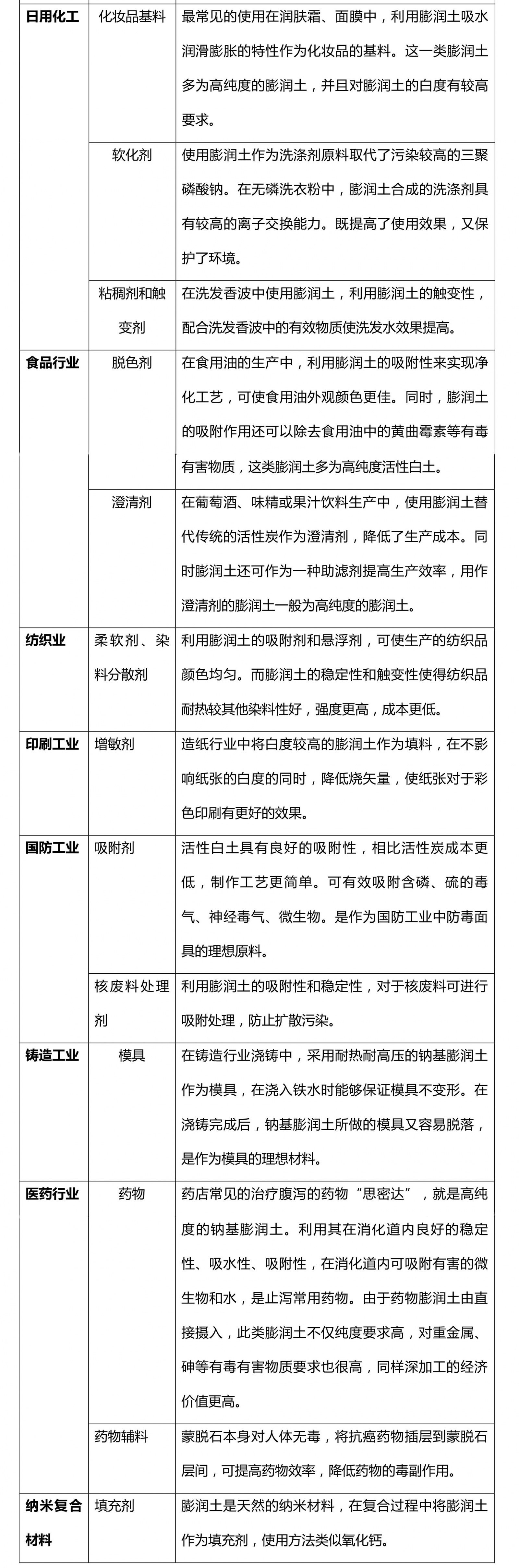 我國的膨潤土標準最早用于鑄造行業、涂料和石油天然氣行業。其中,鑄造用膨潤土、泥漿用膨潤土以及冶金球團用膨潤土占大部分。