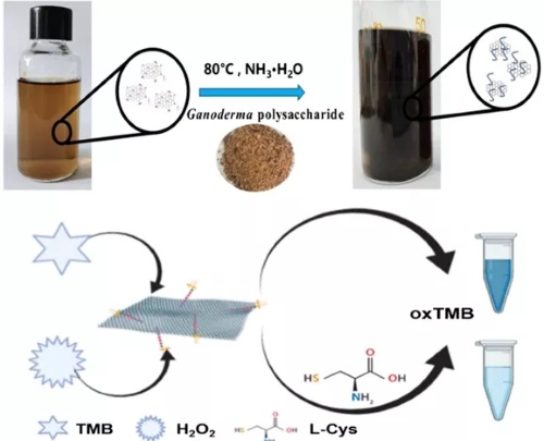 中國粉體網訊 近期,中科院合肥研究院智能所黃青研究員課題組在石墨烯基納米酶的制備及應用方面取得重要進展。該課題組實現了一種用靈芝多糖還原和功能化氧化石墨烯來制備過氧化物模擬酶的簡便而綠色的方法,并驗證該石墨烯基納米酶可用于檢測血清中的L-半胱氨酸。