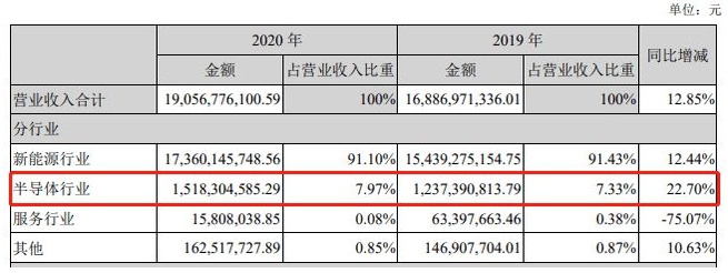 財報方面,2020年,中環股份實現營業收入190.6億元,同比增長12.85%;凈利潤14.8億元,同比增長17.0%;歸屬于上市公司股東的凈利潤10.9億元,較上年同期增長20.5%,其中,半導體材料產業實現營業收入15.2億,同比增長22.7%。