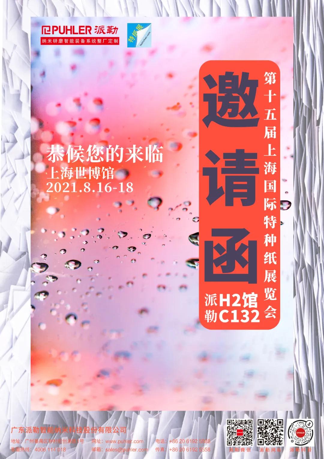 廣東派勒與您相約2021年8月16-18 日第15屆上海國際特種紙展覽會,派勒攜匠心專利產品期待與您一同探討印刷包裝紙行業更多機遇與發展潛能。派勒展位:H2館 C132恭候您的蒞臨。