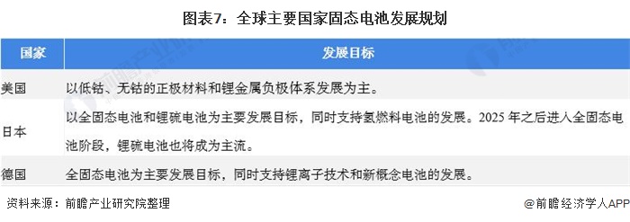 固態電池作為未來鋰電池的發展方向,同時也受到了各國政策規劃的支持,其中發展規劃較為完善的主要有美國、日本和德國。其中,日本與德國以全固態電池為發展目標,同時也謀求其他新概念電池的發展,而美國則致力于成本的降低,以及新型正極材料的應用。