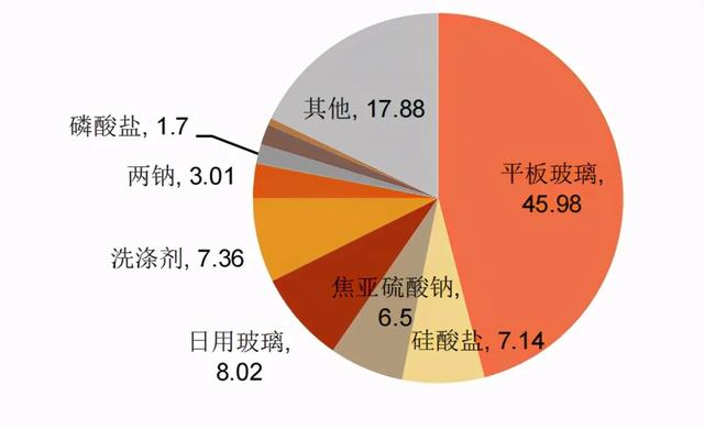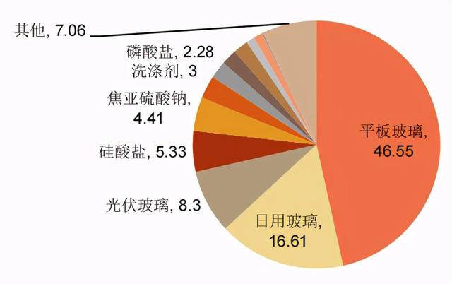 下游需求結(jié)構(gòu)來看,玻璃是其最大的下游應(yīng)用領(lǐng)域,占比接近70%,包括平板玻璃、日用玻璃以及光伏玻璃等。對比過去5年的下游需求結(jié)構(gòu),可以發(fā)現(xiàn),平板玻璃一直是其最大下游應(yīng)用領(lǐng)域,占比徘徊在45%附近,主要是由于平板玻璃需求與房地產(chǎn)領(lǐng)域密切相關(guān),但是受房屋相關(guān)調(diào)控政策的影響,該領(lǐng)域需求增速放緩。