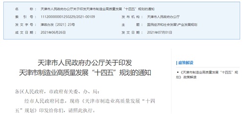 中國粉體網訊 “十四五”時期(2021—2025年),是天津在全面建成高質量小康社會的基礎上,開啟全面建設社會主義現代化大都市新征程的第一個五年,是推動高質量發展、構建新發展格局的關鍵時期。天津立足全國先進制造研發基地定位,圍繞產業基礎高級化、產業鏈現代化,以智能科技產業為引領,著力壯大生物醫藥、新能源、新材料等新興產業,鞏固提升裝備制造、汽車、石油化工、航空航天等優勢產業,加快構建“1+3+4”現代工業產業體系,推動冶金、輕紡等傳統產業高端化、綠色化、智能化升級,打造制造強市。