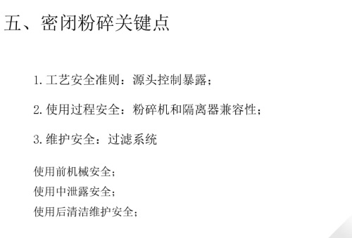 第二個是共性問題,粉碎工藝是最容易產塵的工藝步驟,密閉粉碎解決方案是當前最迫切的需求。目前國內大多數制藥企業,粉碎投料多是暴露環境下的投料,用塑料袋收料,不能完全密封,尤其是折疊位置容易泄露,漏一點縫隙就會冒粉塵。對于有毒有活性產品來說,粉碎工藝的密閉性就顯得尤為重要。