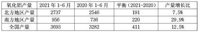 表1:2021和2020年氧化鋁產(chǎn)量對比 (單位:萬噸)