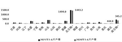 圖1:2021年與2020年上半年全國電解鋁產(chǎn)量對比 (單位:萬噸)