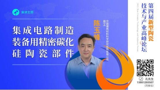 中國粉體網將在鄭州舉辦“2021第四屆新型陶瓷技術與產業高峰論壇”。屆時,中國建筑材料科學研究總院有限公司總工陳玉峰先生帶來題為《集成電路制造裝備用精密碳化硅陶瓷部件》的報告。報告將分析集成電路制造關鍵裝備用結構材料的特點及對精密結構部件的技術要求,并介紹中國建筑材料科學研究總院精密碳化硅陶瓷部件制備的解決方案。所制備的真空吸盤、導軌、反射鏡、工件臺等精密碳化硅結構部件已應用到光刻機等關鍵裝備上,推動了我國集成電路關鍵裝備國產化發展。(鑒于當前防控需要,原定于2021年8月13-14日在鄭州喆鵬酒店舉辦的“第四屆新型陶瓷技術與產業高峰論壇”將延期舉辦,計劃參會的單位可以聯系會務組,具體舉辦日期主辦方確定后將第一時間通知您!)