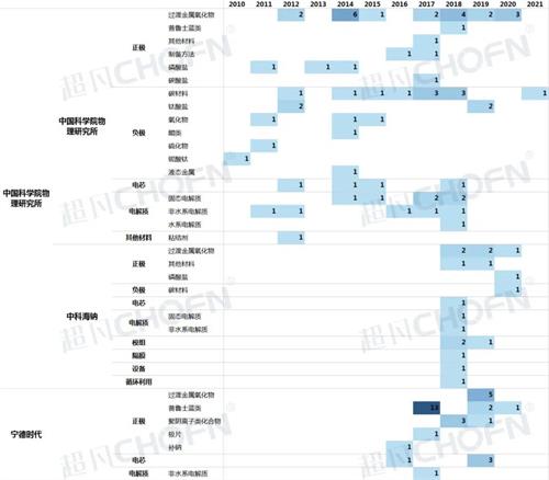 上圖可清晰的反映中科院物理所(中科海鈉)和寧德時代研究重點均在正極材料技術(shù)領(lǐng)域。