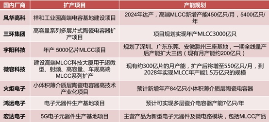 國內廠商MLCC擴產計劃,來源:各公司年報,公司官網,Wind,方正證券研究所整理