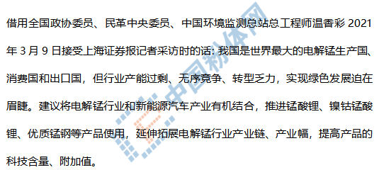 二是繼續做深錳產品的利用價值,強鏈補鏈延鏈,不斷拓寬錳的用途。尤其在未來的高端裝備制造業、新能源材料、生態農牧業等領域對錳系產品的需求方面,以打造高品質的綠色錳產品,來開拓和細分新的市場。尤其充分利用新能源汽車蓬勃發展的態勢,繼續做強做優錳酸鋰、二氧化錳、硫酸錳等新材料產業,讓高質量的錳系列產品服務傳統冶金行業、農牧業和新興能源行業。