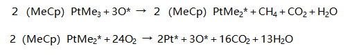 以金屬有機前驅體甲基環戊二烯三甲基鉑制備鉑為例,鉑前驅體配體置換吸附在表面,部分配體與表面吸附氧發生燃燒反應;氧氣脈沖燒掉剩余配體,在鉑表面又留下含氧基,包含催化和表面化學的作用,以此形成循環反應。