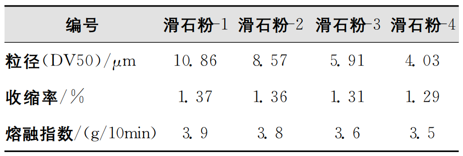 2滑石粉粒徑對復合材料加工性能的影響